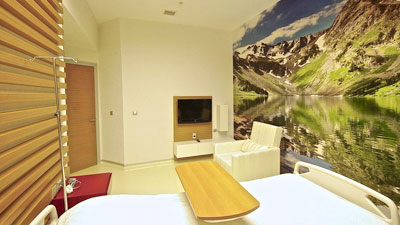Dünya şehirleri konseptiyle tasarlanan dublex hasta odalarımızda hem hastalarımız hem refakatçilerin konforu düşünülmüştür.